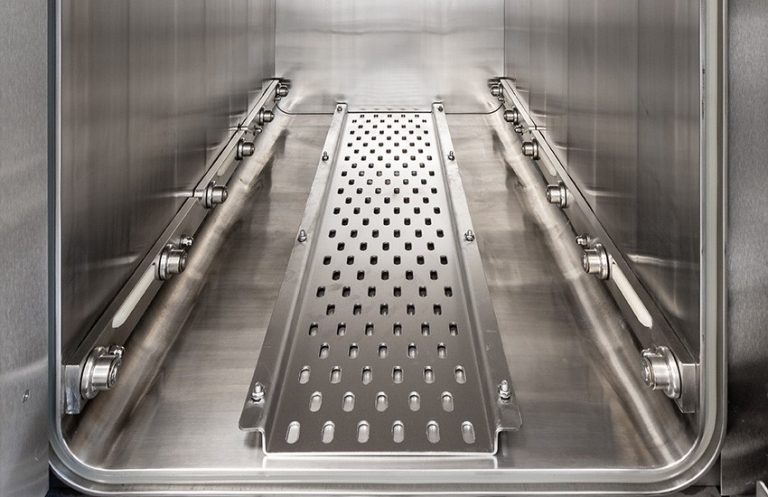 Applications & Compliance: Suitable for large instrument sets, gowns, pharma components, large loads in hospitals and manufacturing; built for GMP/cleanroom compliance.